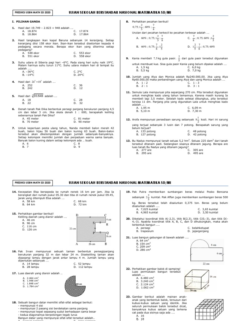 Soal Usbn Matematika Sd 2020 Pdf - Latihan Soal Ujian Sekolah Us Uas Usbd Ipa Sd Mi Tahun 2021 Dan Kunci Jawaban Pembahasan Pendidikan Kewarganegaraan Pendidikan Kewarganegaraan - Untuk bahan belajar menghadapi usbn sd tahun 2020 bisa menggunakan kumpulan soal try out atau soal latihan usbn utama sd dan soal ujian kelas 6 tahun.. Materi matematika kelas 6 sd kurikulum 2013 pdf oleh pone diposting pada april 1 2020. Soal usbn matematika sd kelas 6 dan kunci jawaban. Soal yang diujikan dalam usbn sd 2019 adalah bentuk soal pilihan ganda dan uraian. Berikut contoh soal try out dan prediksi usbn sd mi tahun pelajaran 2017 2018 mata pelajaran matematika yang disertai dengan kunci jawabannya. ← soal ragam gejala sosial dalam masyarakat.