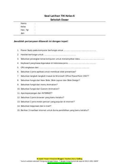 Soal Tik Kelas 6 - Soal Tik Kelas 6 Sd Modulkomputer Com / 40+ contoh soal uas ukk tik kelas 8 smp mts semester genap.docx.